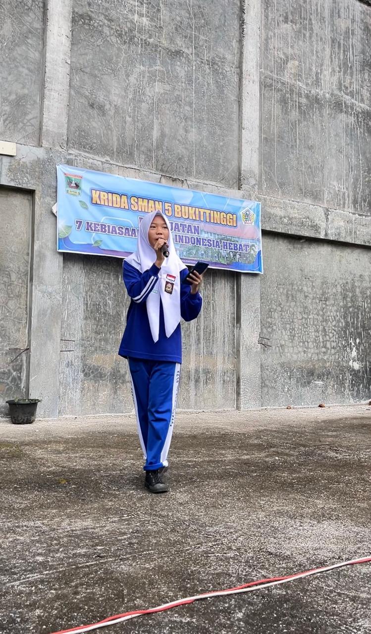 Bukittinggi, 28 Januari 2026 – SMA Negeri 5 Bukittinggi kembali menggelar kegiatan rutin KRIDA yang berlangsung dengan penuh antusiasme. Kali ini kegiatan di ikuti oleh kelas X, dimana sebelumnya kelas XI sudah terlaksa dengan sukses pada hari Kamis Tanggal 15 Januari 2026. Kegiatan ini bertujuan untuk menyeimbangkan kesehatan fisik, kepedulian lingkungan, serta wawasan kebangsaan ini diikuti oleh seluruh warga sekolah.